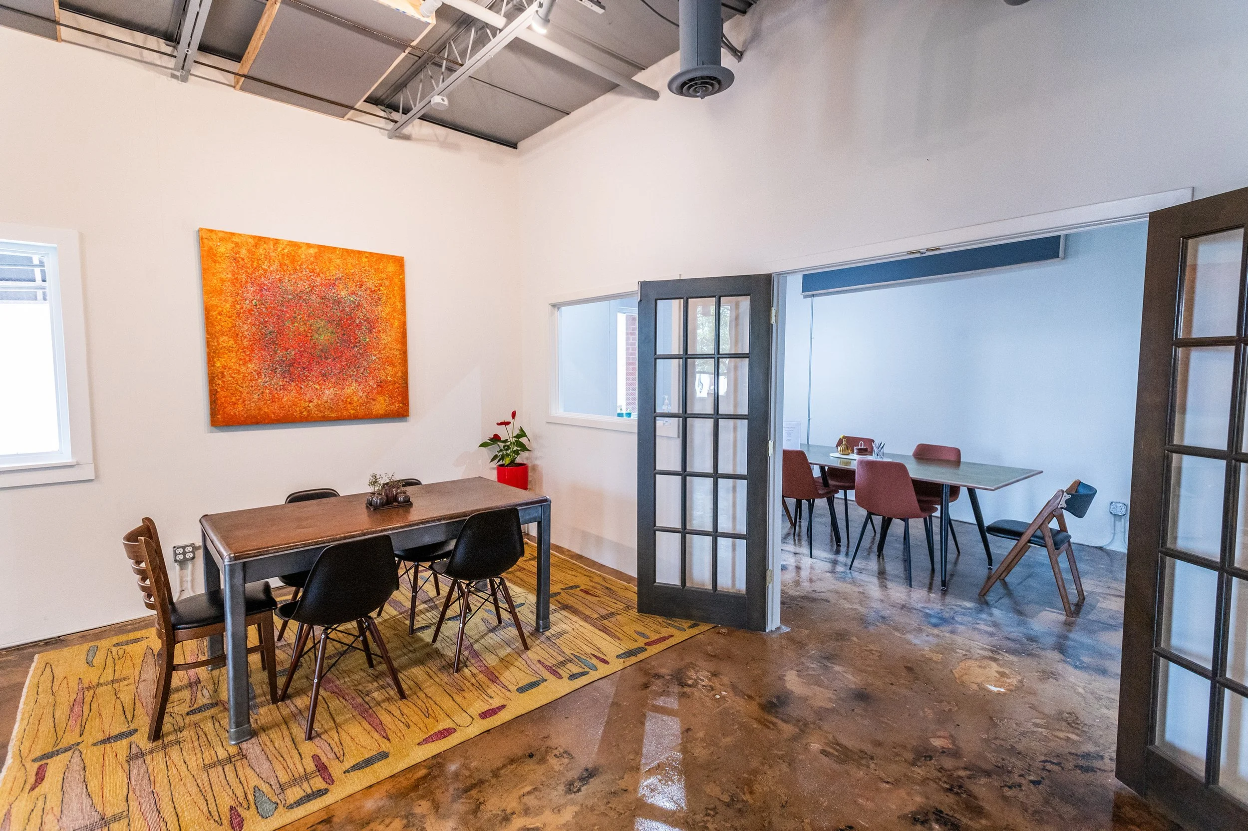 Our space is clean and open with an industrial art gallery vibe. It's the perfect spot for a chill birthday party, company get together, book club meeting, networking event, private meeting or creative workshop.